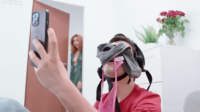 Sneaky son is snooping around step-mom bedroom and perving out with her panties and her strap-on dildo. When mother catches the little perv she finds a creative way to punish him – one that will also fill her desire to get laid! Perv mom dominates son and fucks the strap-on while he wears it around his head, before she gets her mouth and pussy filled with his big cock!