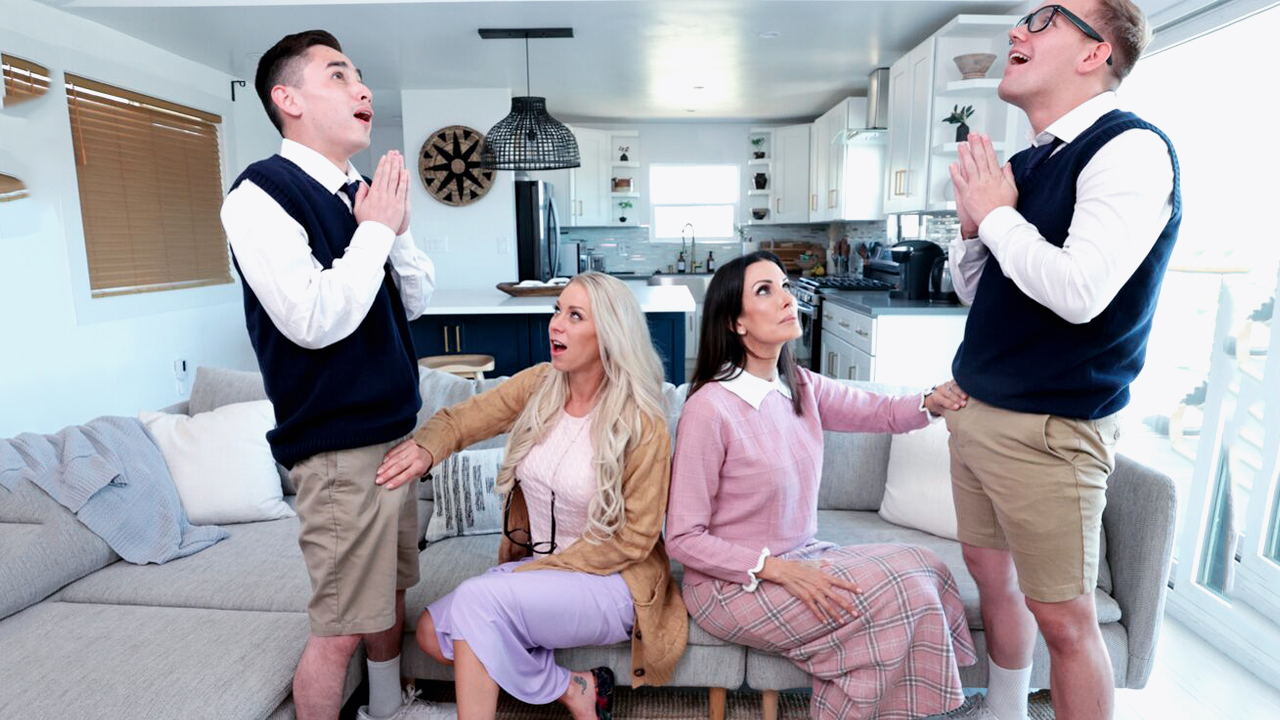 It's a wild night when two sexy moms, Katie and Shay, find a porn magazine under their son's bed. Despite being devout members of their church, the two decide to confront their sons and use them as toys for sex.