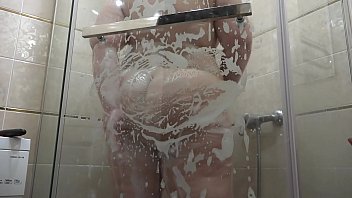 This thick MILF is taking a shower and you can see the oil glistening off her thick ass as soap suds drip down her body.Curvy mommy really getting into it, rubbing her body with her hands and using the shower head to satisfy her naughty desires.