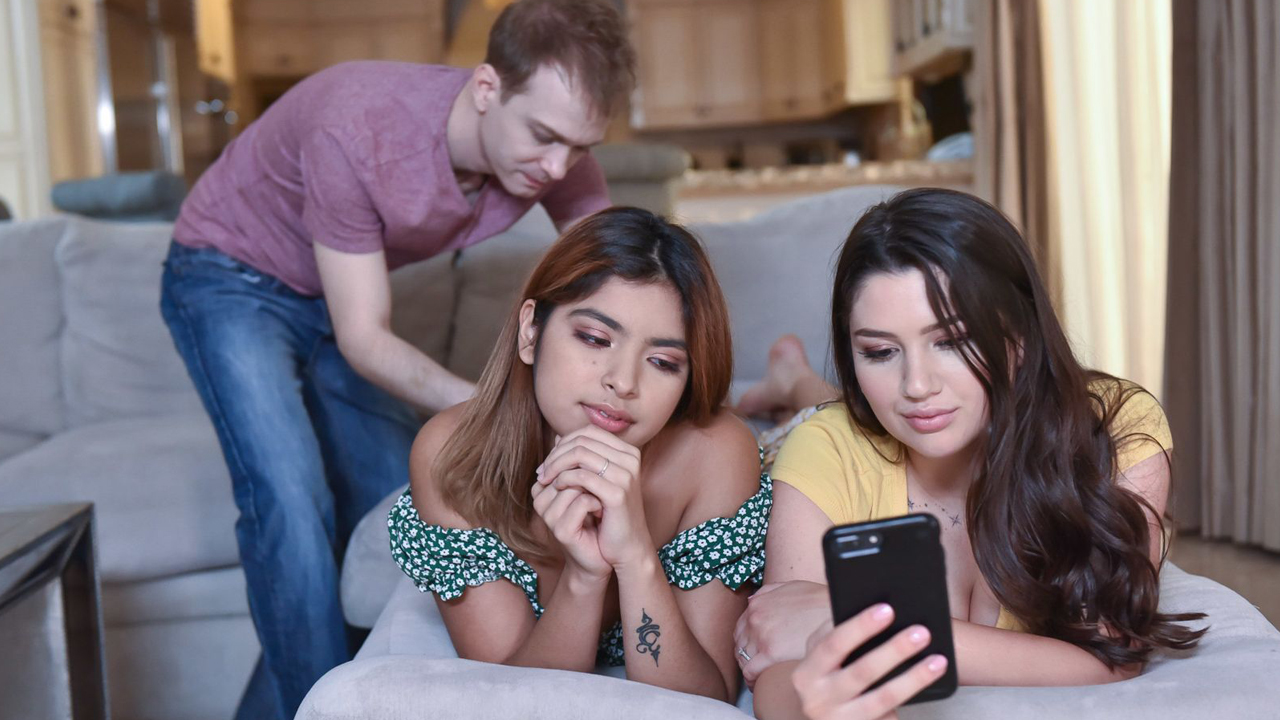 Stepsiblings Alex and Alyx always thought living together would be fun, never thinking it would get this kinky. While Alyx's best friend Hazel falls behind on rent, Alex offers to pay it if she agrees to make herself available to him.But it's not just Alex alone in getting aroused, Alyx joins in too, egging on Hazel and offering words of encouragement on how to suck dick and fuck better. Not wanting to miss out on the fun, Alex decides to get in on the action, fucking Hazel in the ass while Alyx watches with delight.