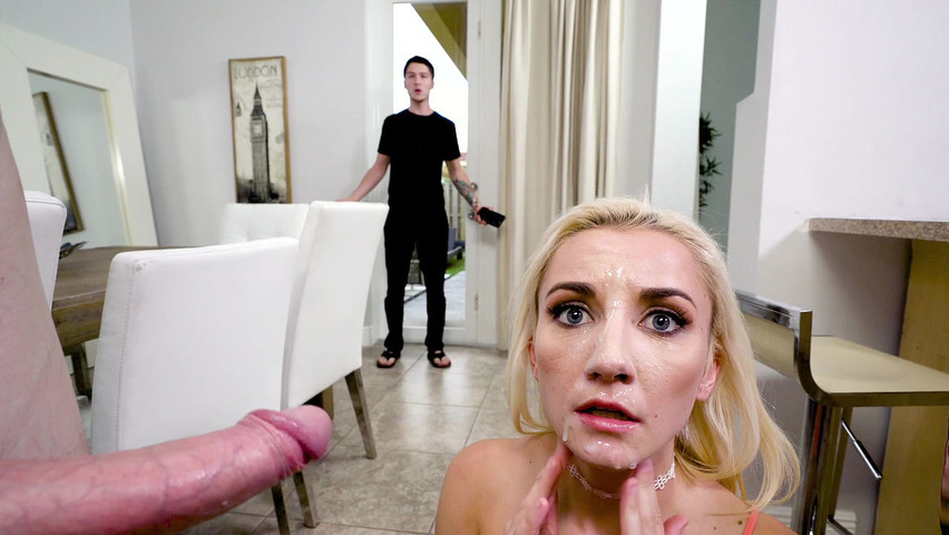 Chick has face jizzed the moment man of the house enters room and sees what guy has done to teen. Sperm covers tender lips and eyes but girl smiles because now she is just a free XXX cock lover in boyfriend's eyes.