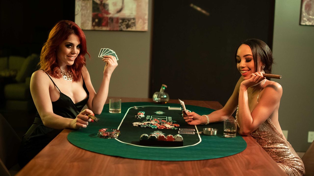 Charming sisters Molly Stewart and Alexis Tae play poker in a taboo sex scene