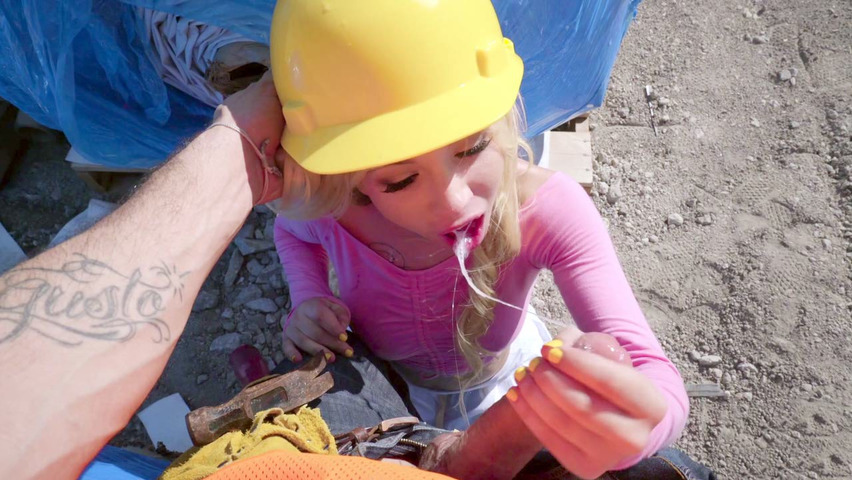 Construction area is a pretty dangerous place. When coed Kenzie Reeves in pink long sleeve top and white skirt kneels to suck foreman's XXX screwdriver, he barely remembers it and puts his helmet on the girl's head.